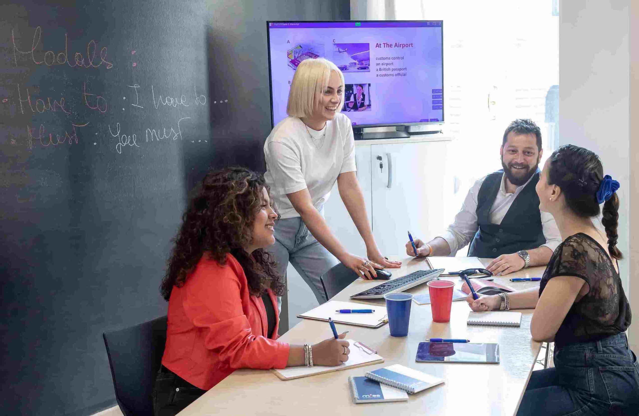 une formation d'anglais en présentiel dans un centre My English School. Vos collaborateurs suivent leur formation d'anglais dans un cadre agréable dans l'un de nos centres de formation.